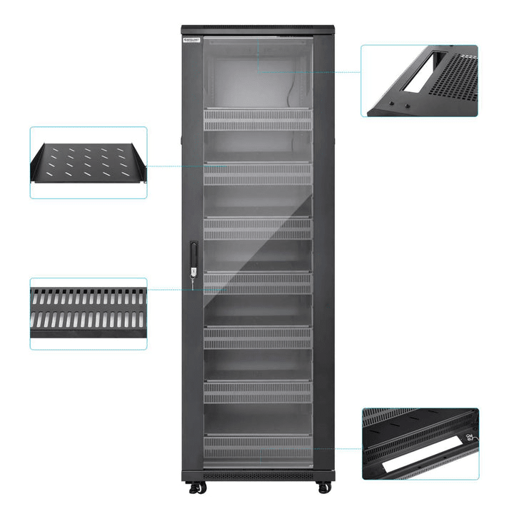 The adjustable depth allows flexibility for deeper equipment, while the removable side panels simplify cabling during setup. Heavy-duty casters make initial placement easy, and leveling feet provide secure stability. For local IT professionals and hobbyists, the cabinet offers professional-grade quality, optimal airflow, and full security, ready to deploy right out of the box.